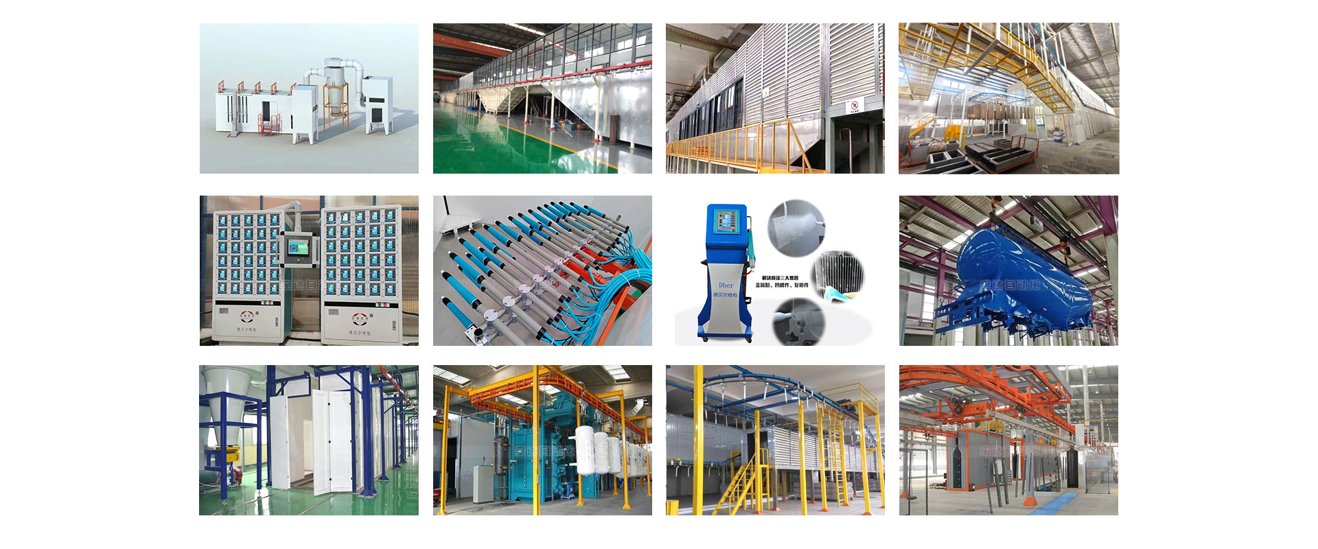 ? ??涂裝設備生產線廠家主要產品的有:噴涂設備流水線、機械臂噴涂設備、靜電粉未、噴塑設備、浸塑設備、電泳涂裝流水線、自動升降機、多軸噴涂往復機、大旋風快速換色粉房、粉末回收設備、多功能噴粉室、大型噴漆室、伸縮噴漆室、噴淋前處理設備、燃氣加熱系統、電加熱烤箱烘干系統、固化烘道、積放涂裝線、懸掛輸送系統、地軌輸送;等多種非標定制設備。